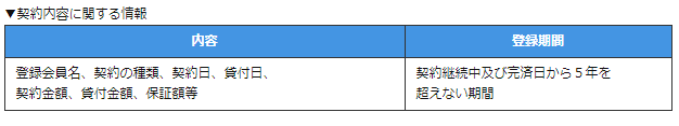 契約内容や返済状況、支払状況、利用残高等に関する情報など、