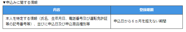 申込情報は6ヶ月間保存されます。